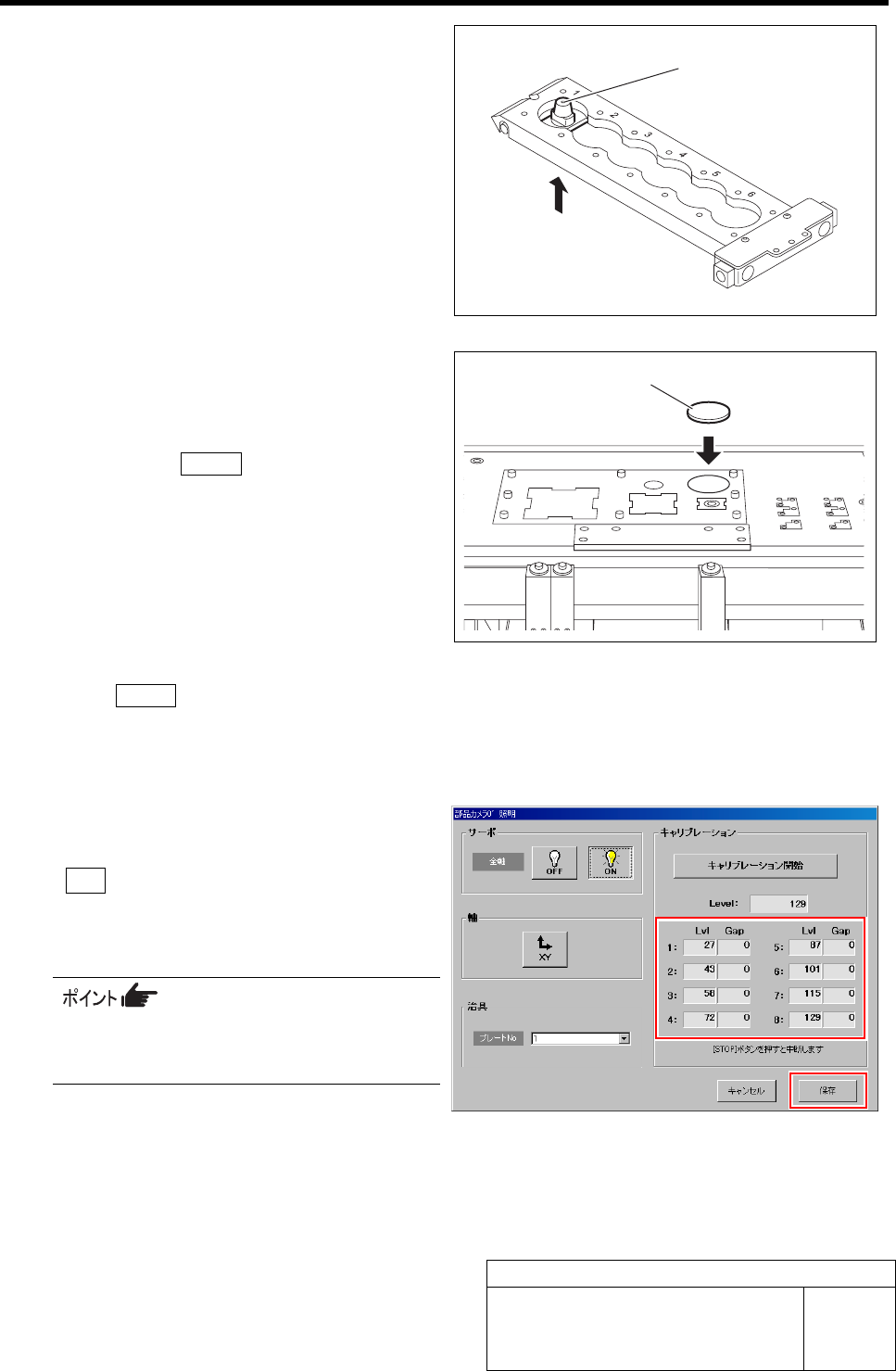 部品カメラ 0 ˚ 照明のキャリブレーション HLF-20302-01 部品カメラ 0 ˚ 照明のキャリブレーション SHEET 2/2 4 ノズルカートリッジ No.1 に冶具ノズル 1 を取り 付けます。 1. ノズルカートリッジの 両側のボタンを押しな がら、ノズルカートリッジを引き抜きます。 2. ノズルカートリッジ No.1 の位置に下側から 冶具ノズル 1 を取り付けます。 3. ノズルカートリッ ジを元の位置に セットし …
