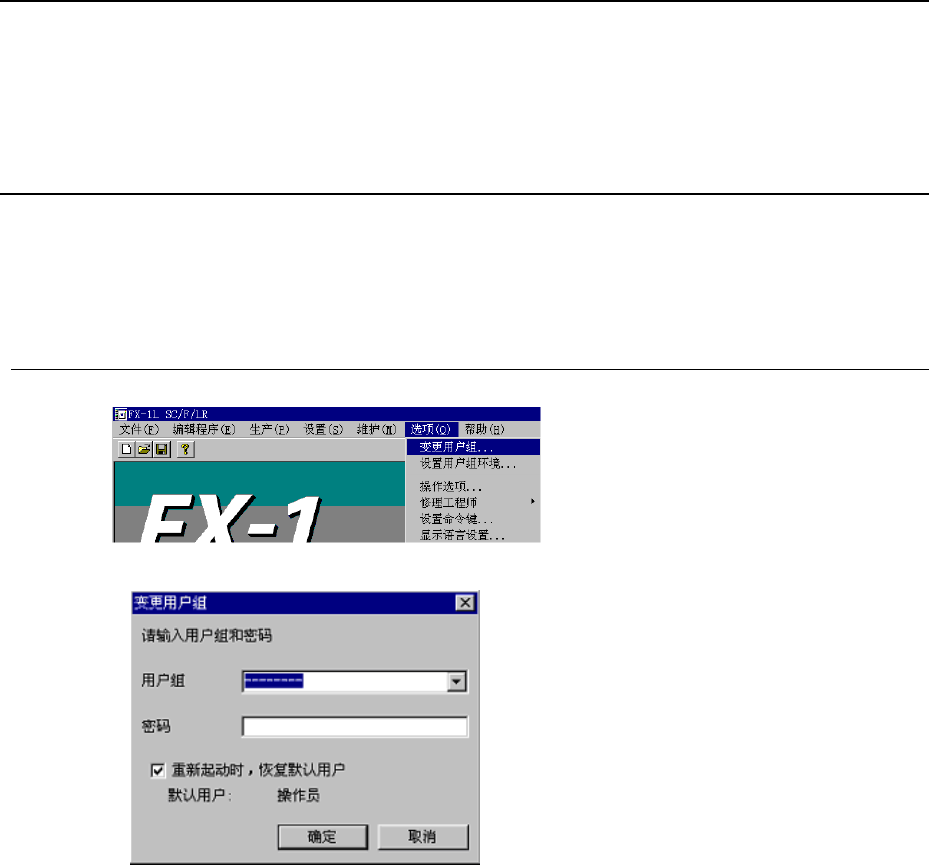 为了防止对机器进行误操作,应根据操作者的熟练程度,通过设定用户组,限制 FX1 的操作可能