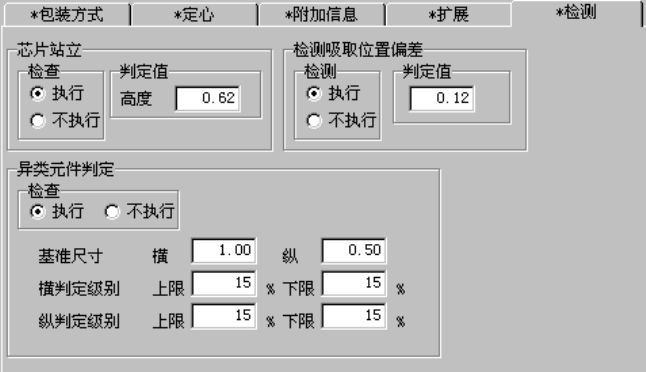 设定检查“芯片站立”、“检测吸取位置偏差”,“异类元件判定”。