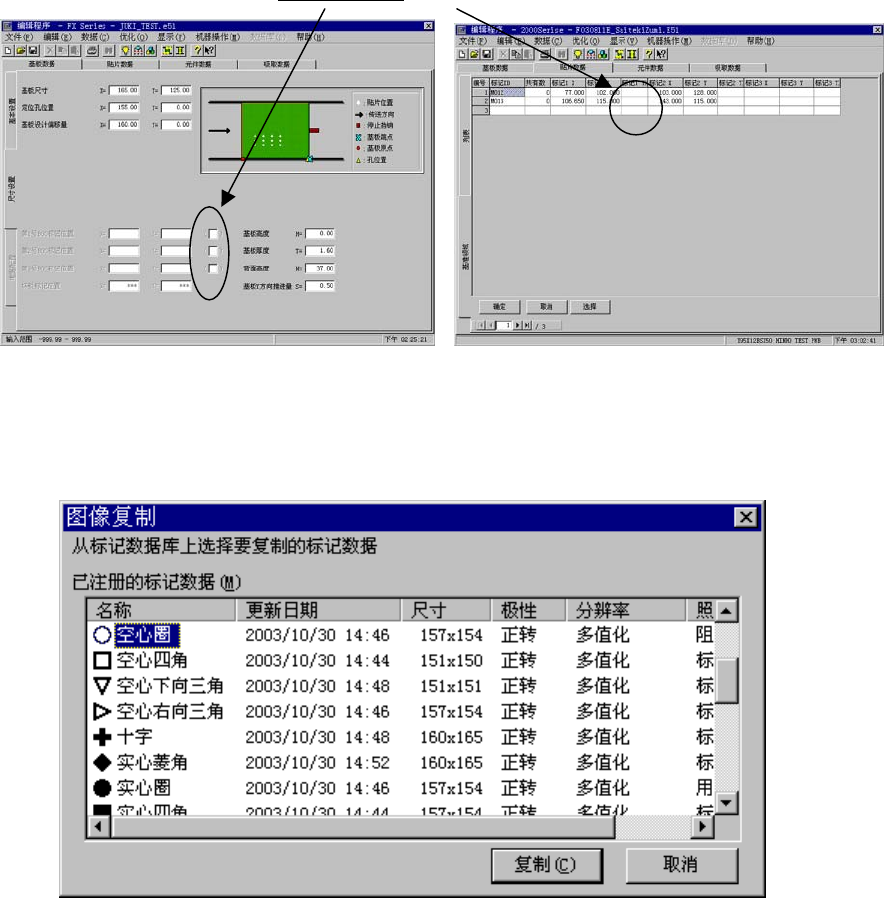 在展开复制生产程序(上图 B)中,若已使用了贴片数据的基准领域标记,则生产程序(B)