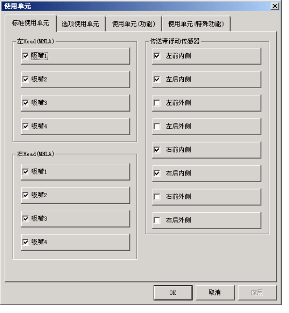可单击各标签页面,设置[标准使用单元]、[选项使用单元]、[使用单元(功能)]、