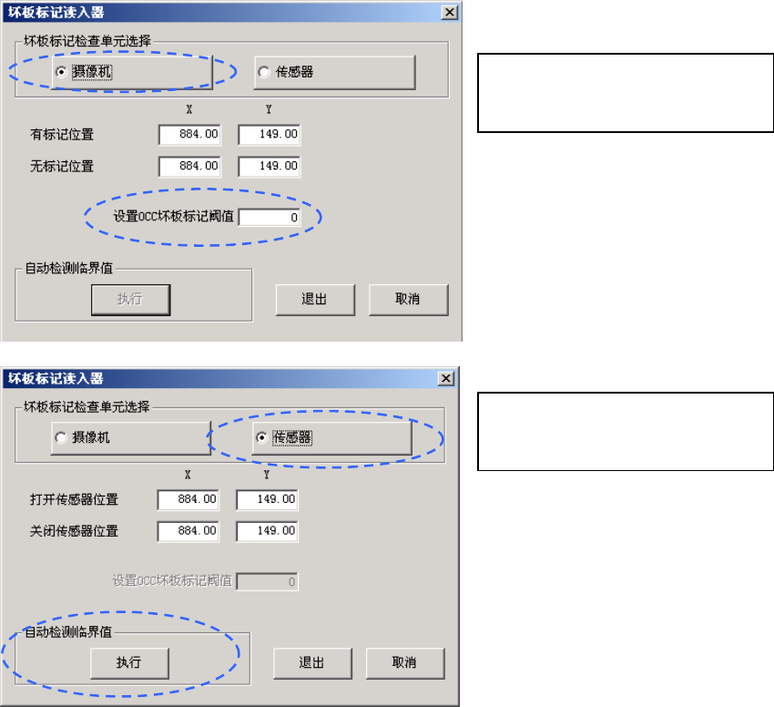 选择是使用摄像机、还是使用坏板标记读入器,进行坏板的检测。无论选择哪种,针对