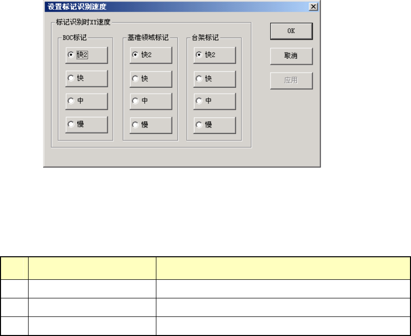 设置在 BOC 标记、基准领域标记、台架标记的各识别动作中的 XY 轴速度。