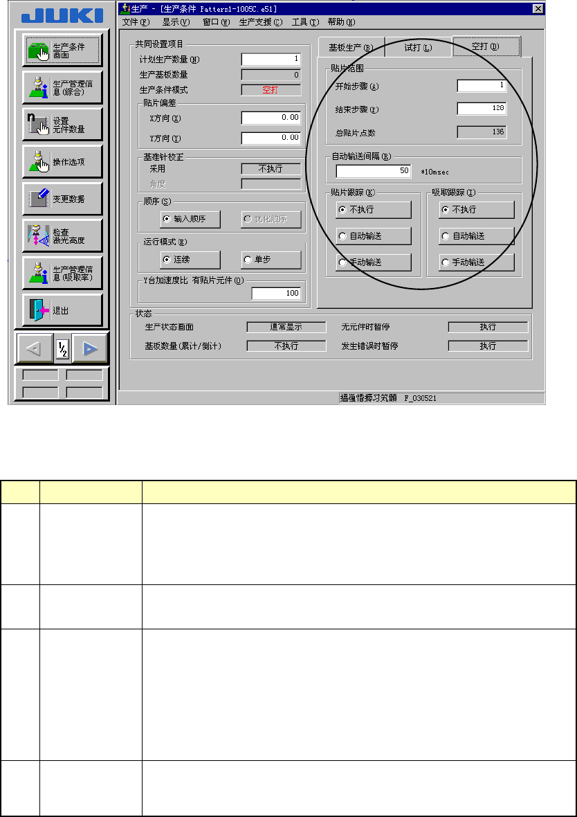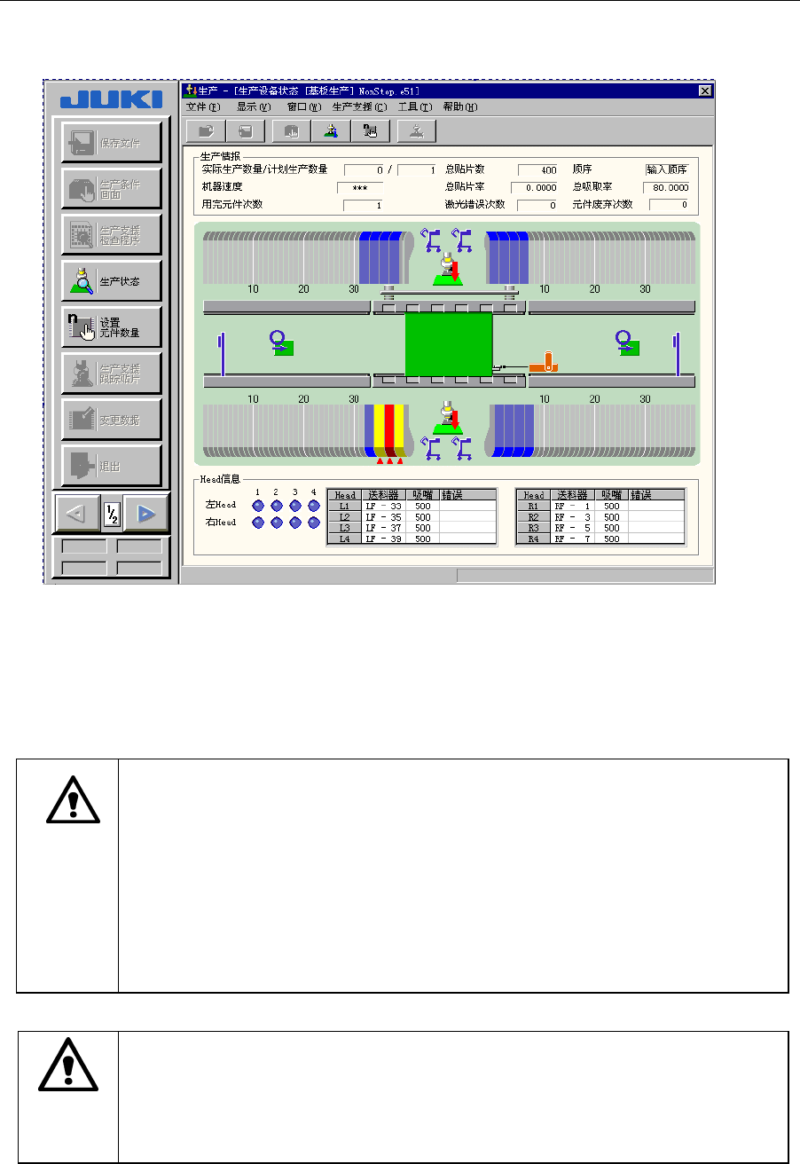 第2章 生产 Rev03 2-8-3 生产开始 设定生产条件,按下操作板的<START>开关。 生产开始,显示生产设备状态画面。 图 2.8.3.1 生产设备状态显示画面 按< S T A R T >开关后若尚未完成原点定位时,请按< O R I G I N >开关,执行原点定位后,再按一次 <START>开关。 处于生产状态时按<STOP>开关,生产进入暂停状态(暂停) 。 …