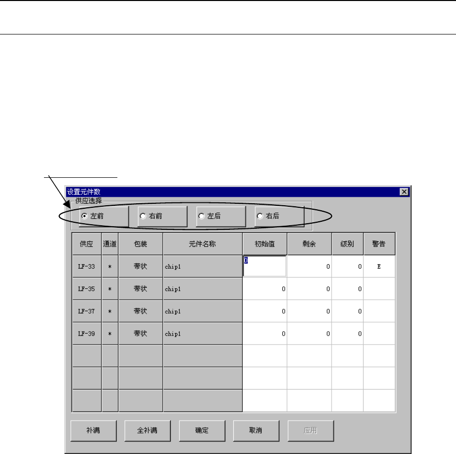 •设置使用前的元件供应数量。输入初始值或变更后,将被复写到剩余数里。