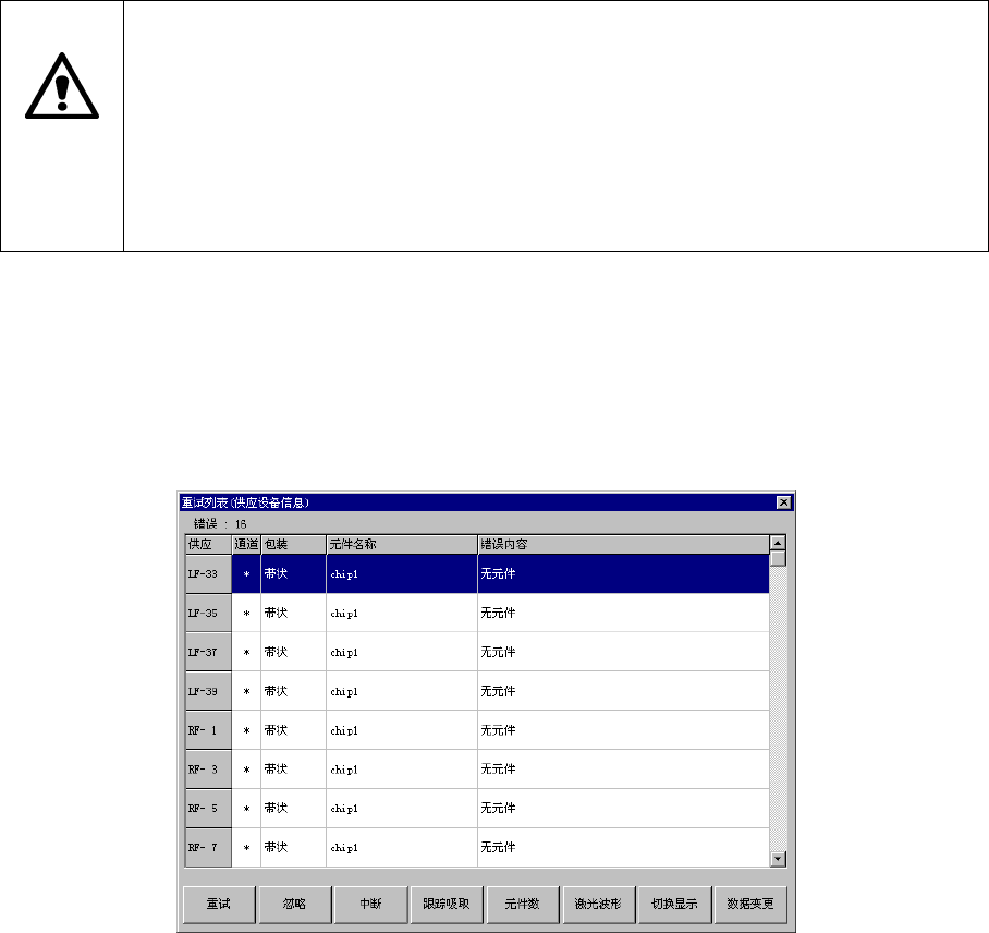 忽略 忽略该项无元件,从下次吸取循环开始继续生产。