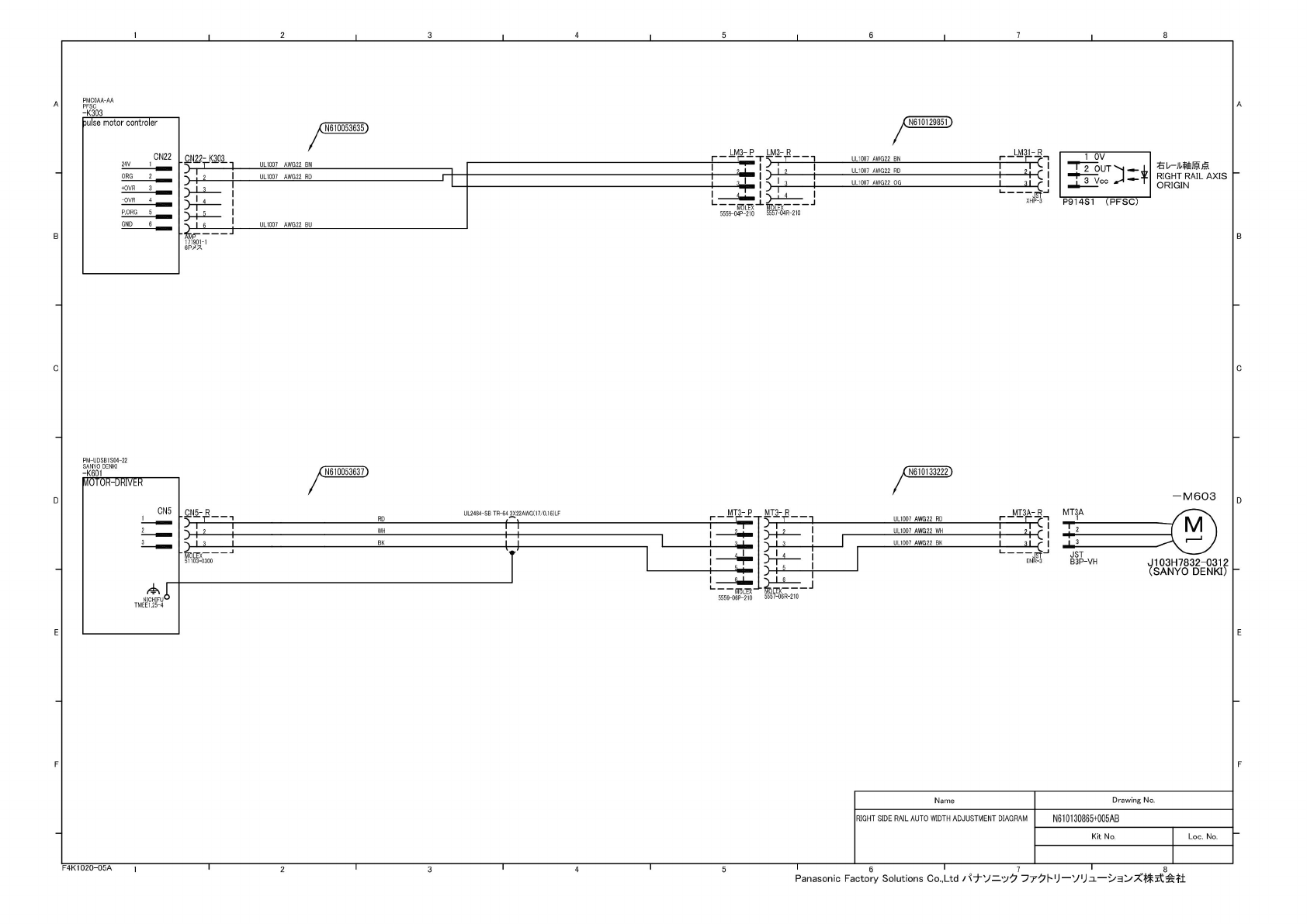 PM-UDSB1S04-22 SANYO DENKI -K601 UL2484-SB TR-64 3X22AWGC1 7/0.1 6)LF N610133222 -M603 MT3A M J103H7832-0312 (SANYO DENKI) JST B3P-VH Name Drawing No. RIGHT SIDE RAIL AUTO WIDTH ADJUSTMENT DIAGRAM N610130865+005AB Kit No…