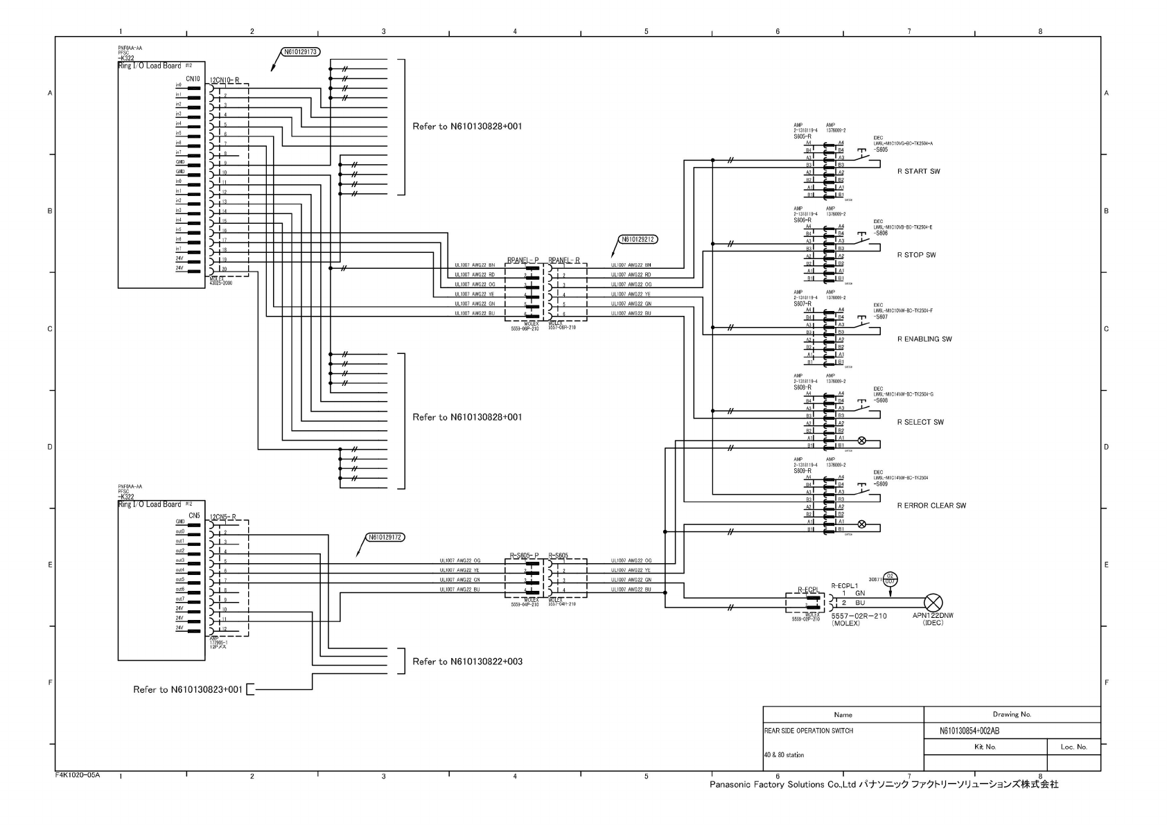 xmg 1/U N610129173 Refer to N61 01 30828+001 A4 A3 R START SW IQ 11 12 SWICtI 13 14 15 M610129212 17 18 R STOP SW A2 19 UL1007 AWG22 BN UL1007 AWG22 BN UL1007 AWG22 RD UL1007 AWG22 RD UL1007 AWG22 OG ULI 007 AWG22 OG UL1…