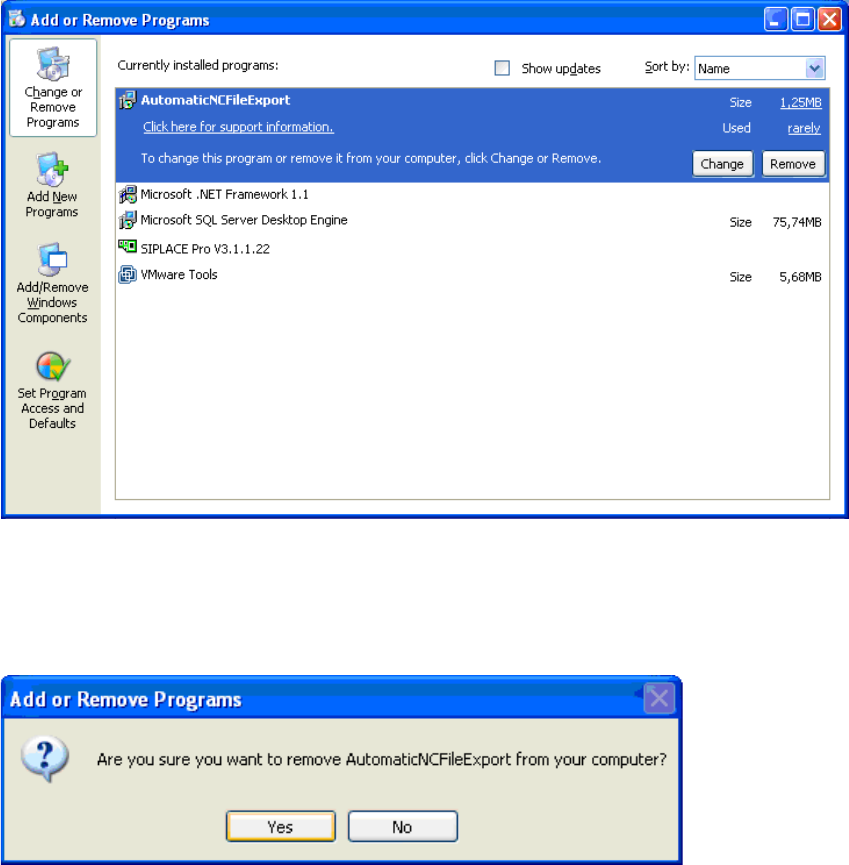 Soll der Automatische NC –Export nochmals vollständig installiert werden, so muß die Vorgän-