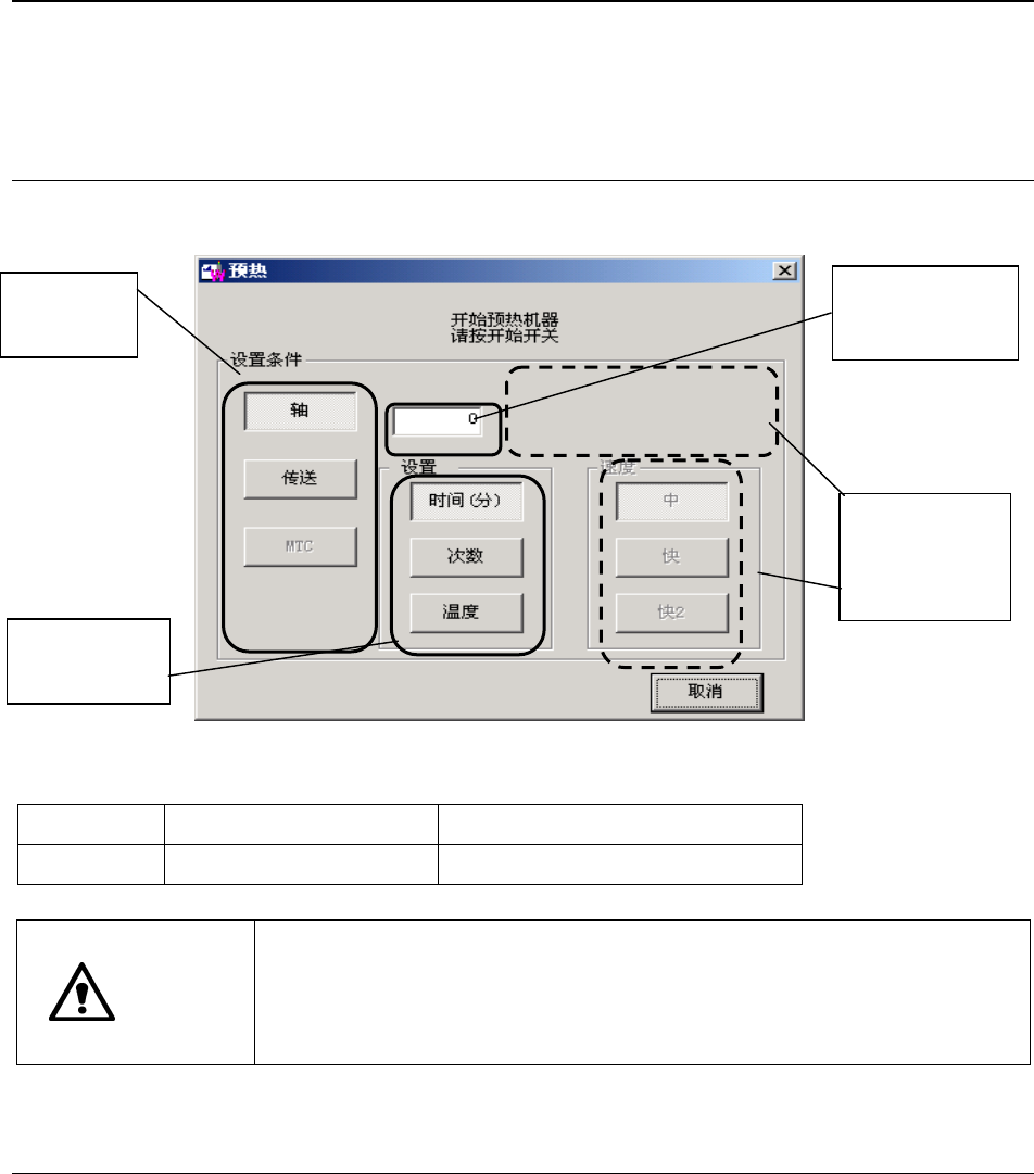 预热对象,从轴、传送、MTC 中选择(初始设置为“轴”)一项。