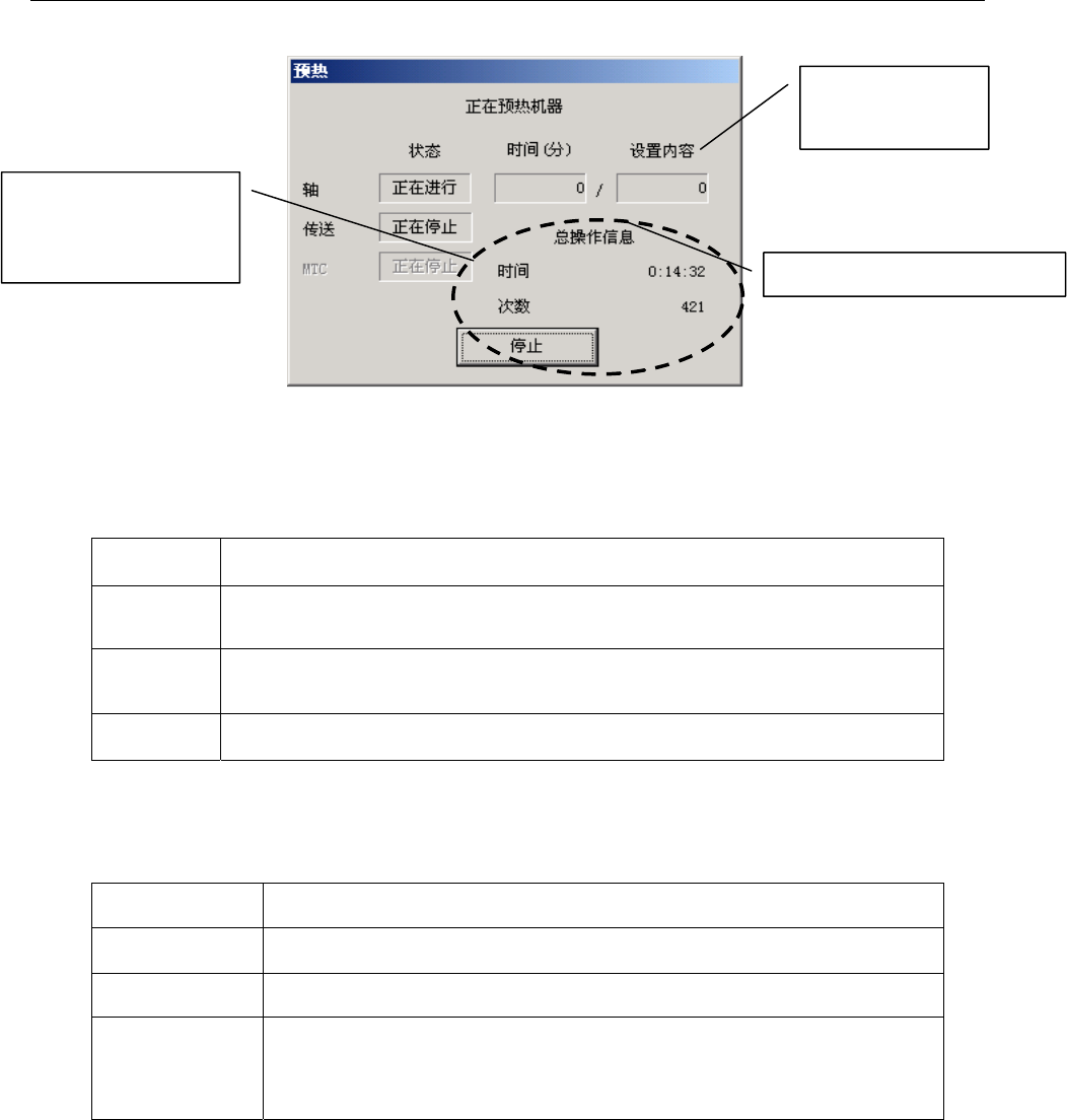 总操作信息 显示迄今为止执行预热的总时间和次数。