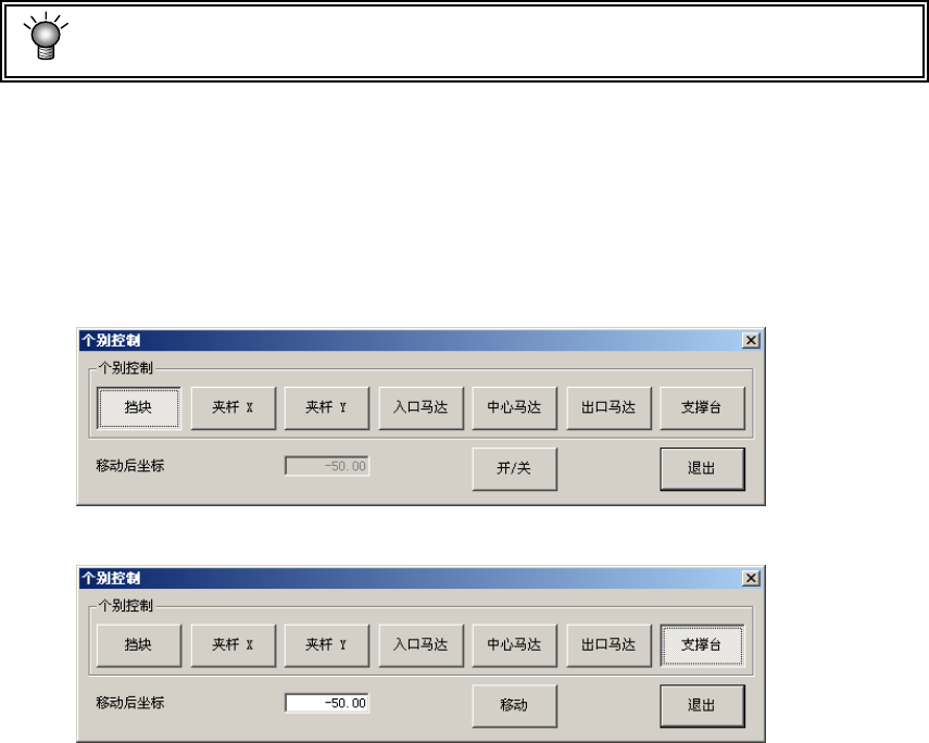 在 “个别控制”的项目选择“支撑台”时,还可指定“移动后坐标”(支撑