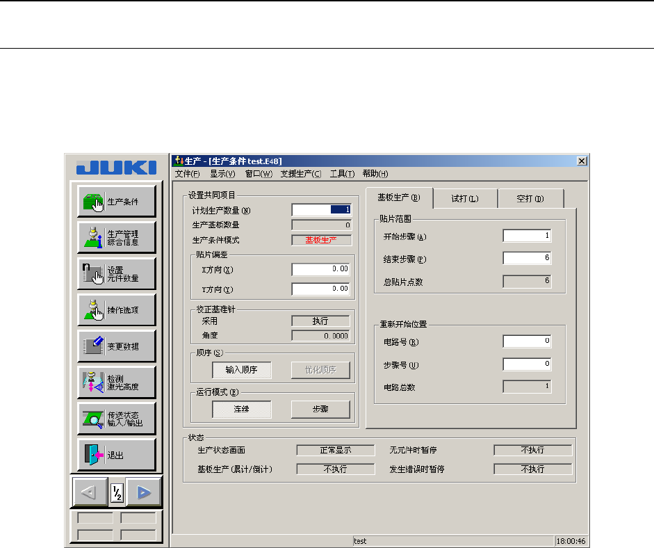 根据“基板生产”、“试打”、“空打”各种生产模式,分别设定各自的生产条件。
