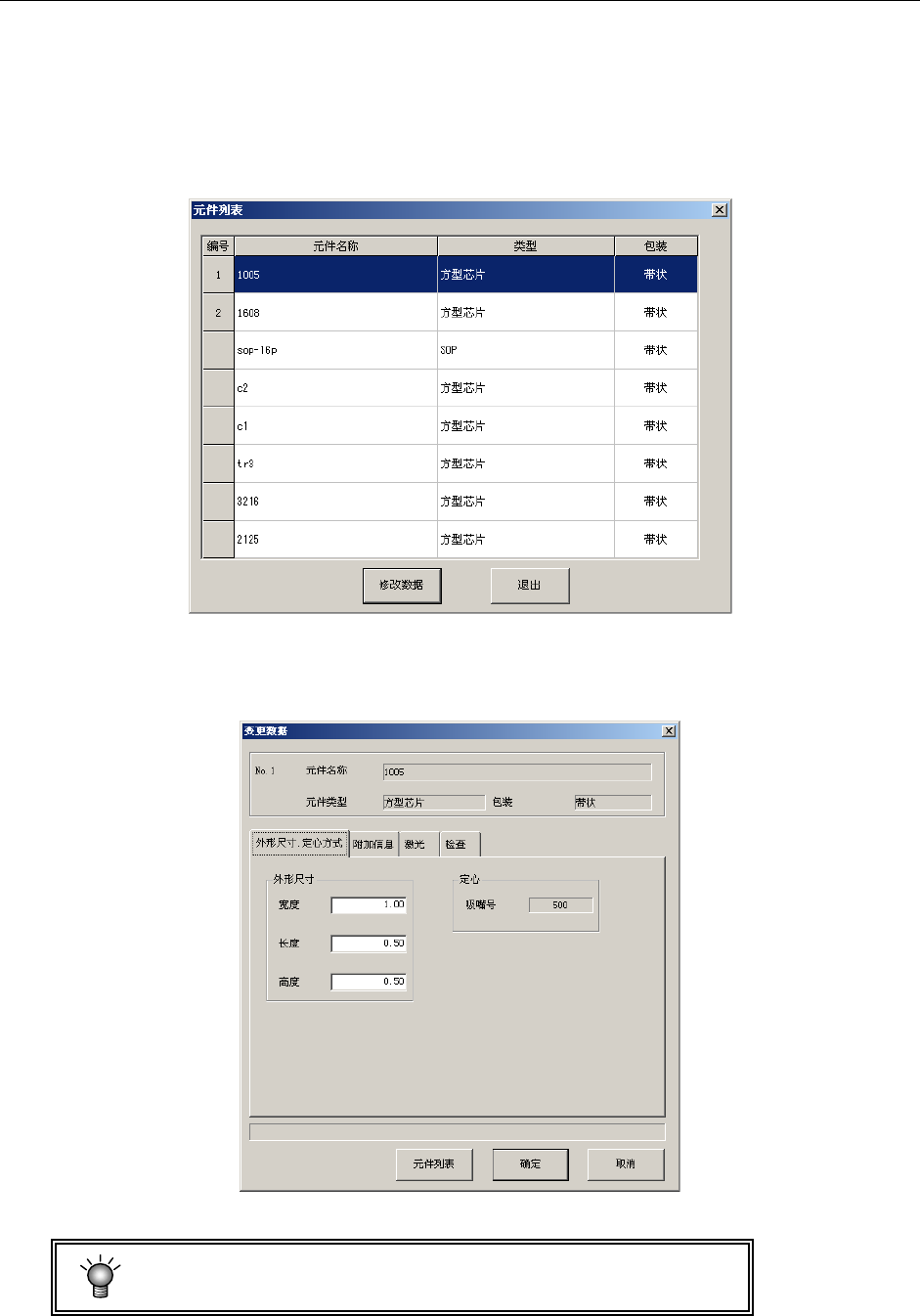 元件数据的内容中,送料器种类等部分信息不能变更。