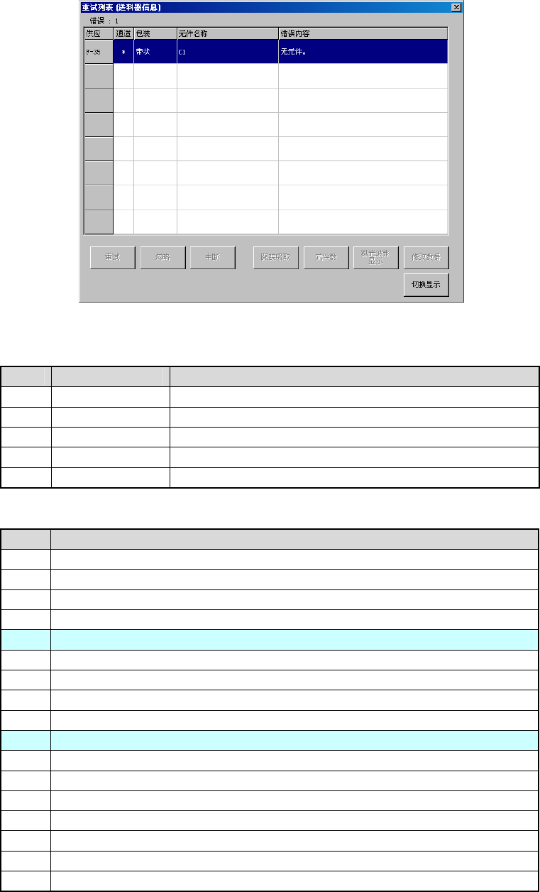 显示如图2.10.5.1.2所示的供应装置信息。此外,未吸取、未贴片时,不显示错误。