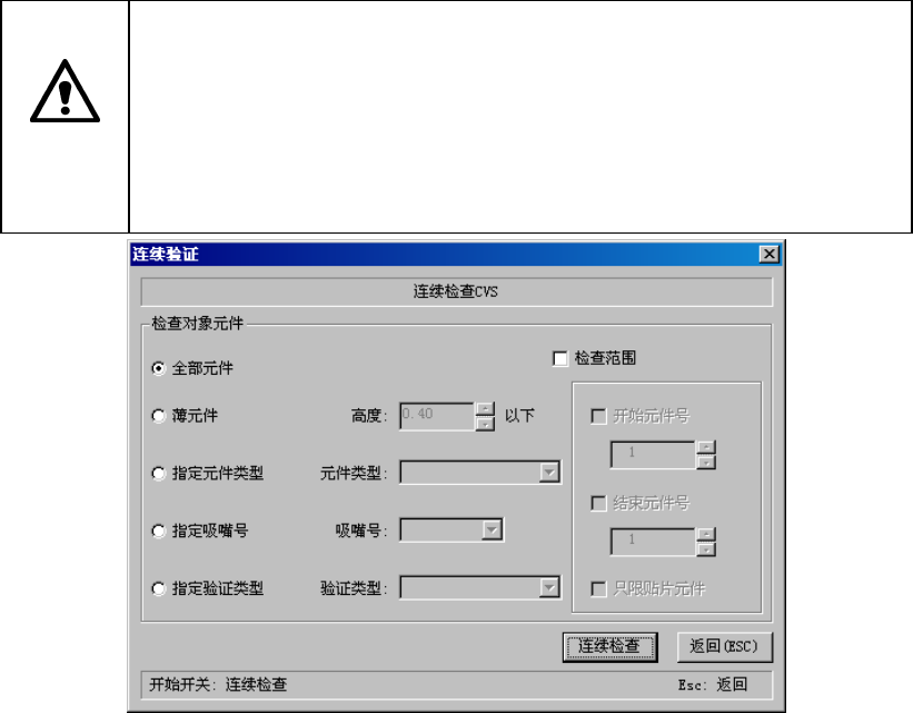 显示如下画面。请设定作为检查对象的元件的条件,单击“连续检查”。