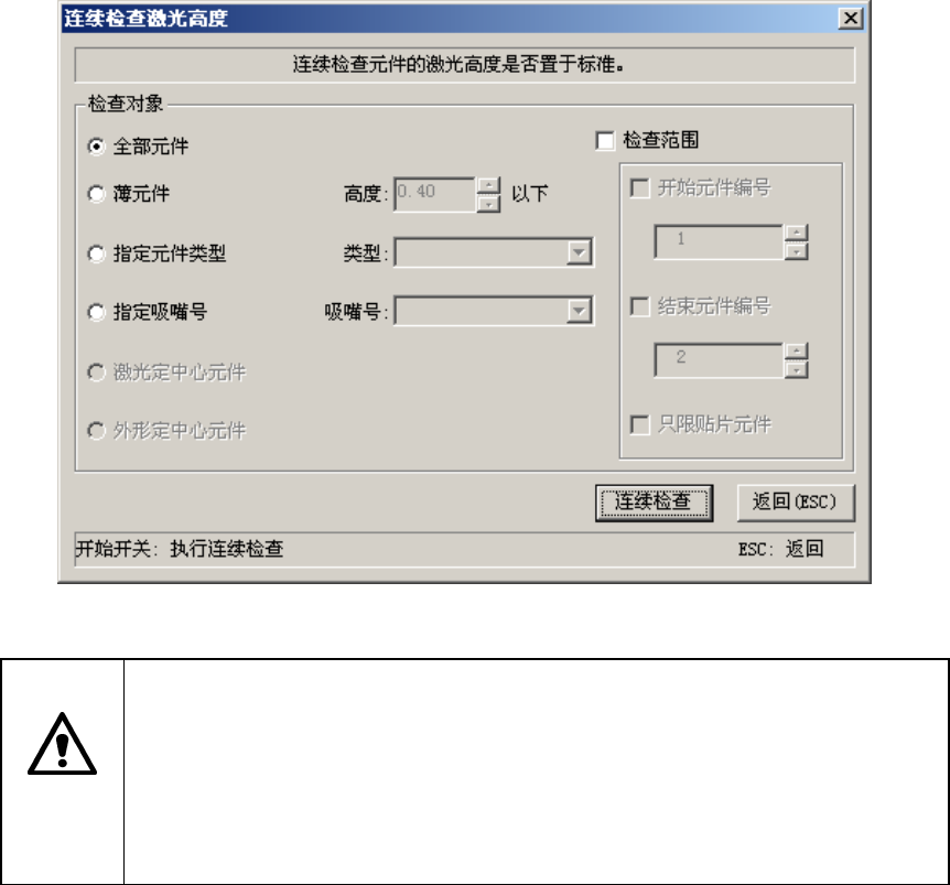 连续检查中显示进行连续检查的元件内容/吸取位置/激光高度依次检查的处理内容。