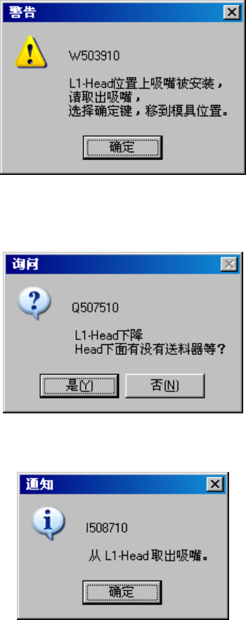 选择“确定”后,若还有其他吸嘴安装错误时,请做同样处理。