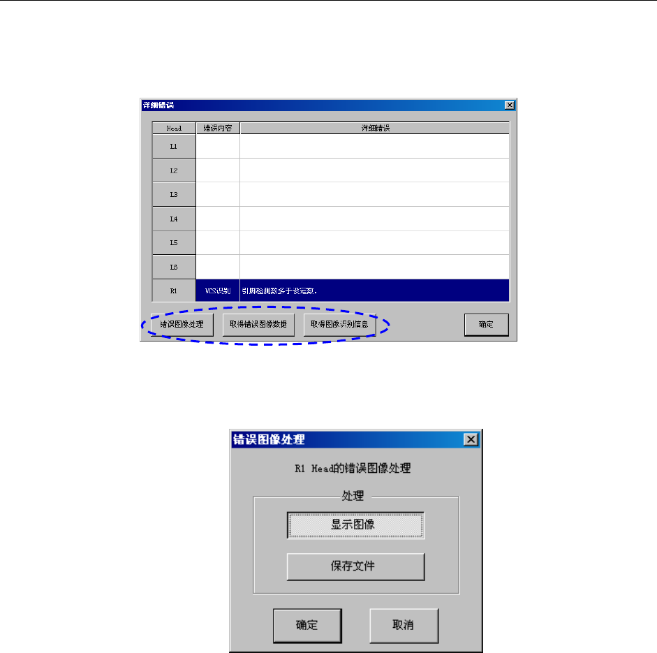 发生图像识别异常错误时,在下列错误详细信息对话框里,将显示[错误图像处理],[取得错误