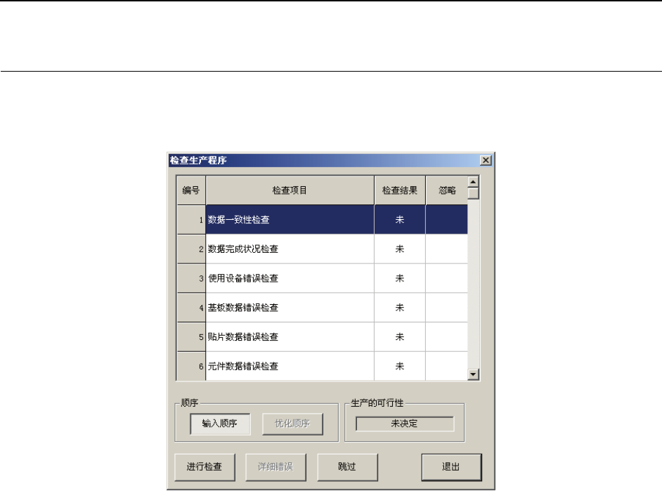 开始生产前点击菜单栏的“生产支援”/“检查生产程序”后,显示检查生产程序画面。