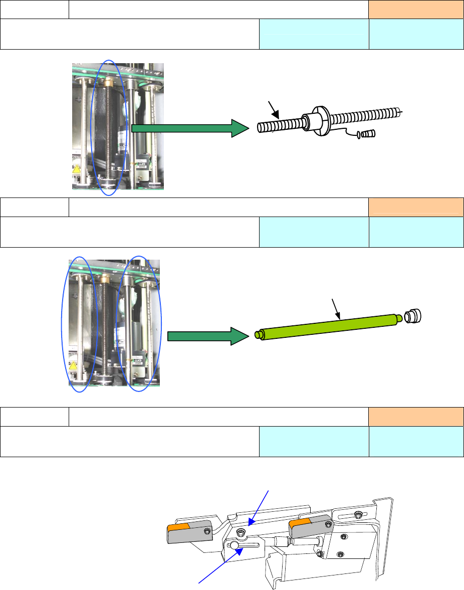 第 1 部 基本编 第 3 章 维护 3-24 1) スクリューシャフト 左右 1 本ずつ ①全面に黄油を塗布して下さい。 1) ガイドシャフト 左 2 本、右 3 本 ①全面に黄油を塗布して下さい。 1)请在垫圈部和滑动沟槽部涂上黄油。 注油项目 ・ 3-4-2 传送螺旋轴(轴) 实施频度 : 每月 使用工具 : 毛刷 使用润滑油 : 6459 润滑油 N 注油项目 ・ 3-4-3 传送导轴 实施频度 : 每月 使用工具 : 毛刷 使…