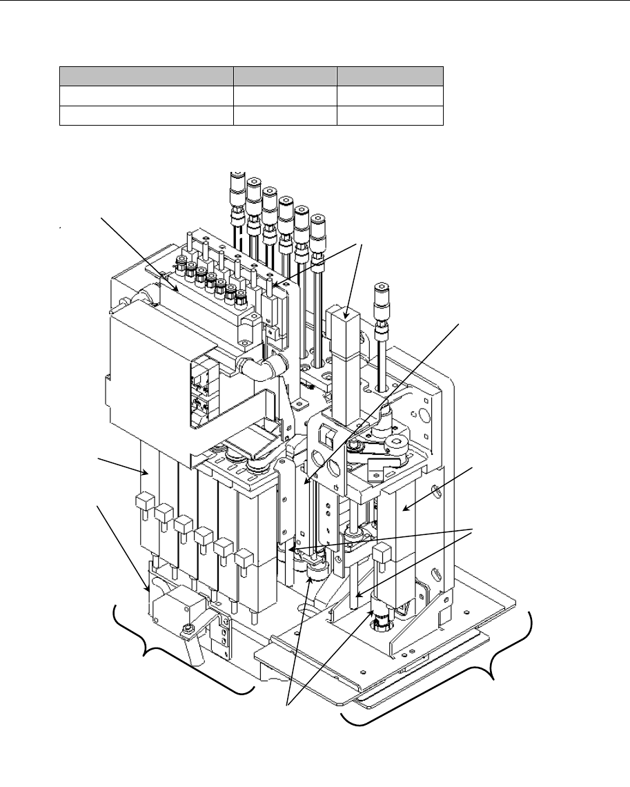 第 1 部 基本编 第 1 章 设备概要 1-11 1-2-1-4 ATC 单元(Auto Tool Changer 自动工具交换装置)的构成 由气缸④来开、关滑动板②,保管并装卸吸嘴⑧。 滑动板②的开、关,由ATC OPEN(打开) 传感器⑥、ATC CLOSE(关闭)传感器⑦来检测, 开、关的速度由速度控器⑤来调整。 图 1-2-1-8 ATC 单元 ① ATC 基座 ⑥ ATC OPEN 传感器 ② 滑动板 ⑦ ATC CLOSE…