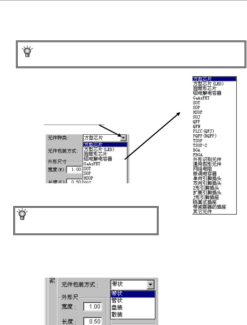 从下拉式一览表中选择元件种类。