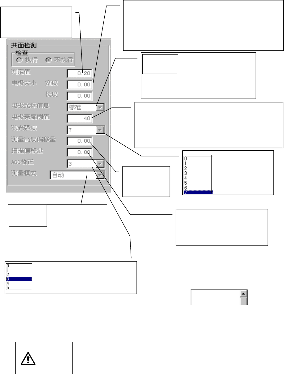 除“检查”、“判定值”、“电极亮度阈值”、“扫描偏移量”外,在