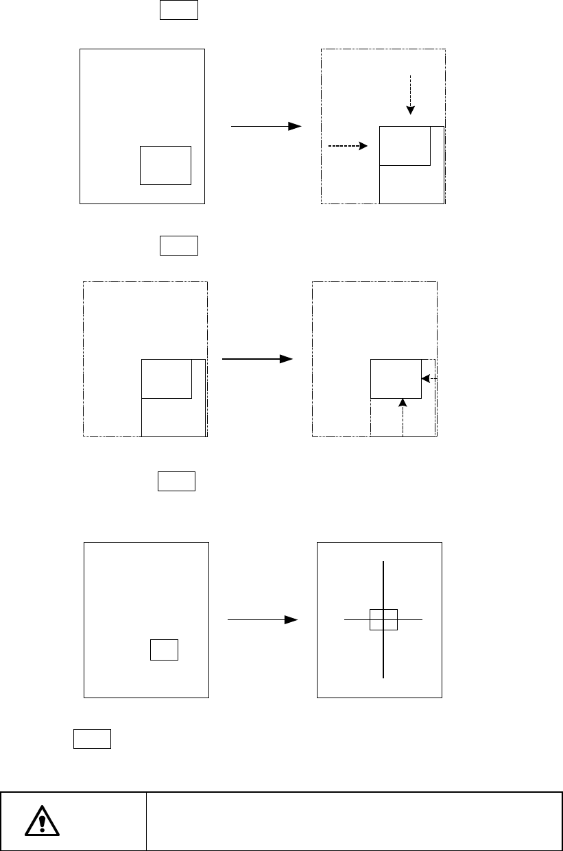 第1部 基本篇 第4章 制作生产程序 4-150 用XY轴用的轴驱动键,来移动窗口框的上面、左面、下面及右面。 先移动上面、左面,按下 ENTER 键。 再移动下面、右面,按下 ENTER 键。 移动下面、 右面后, 按下 ENTER 键, 摄像机移动,使箱形窗口的中 心变为原来十字光标的中心, 箱形窗口变回十字光标。 在此,按下 ENTER 键,就可获得坐标值。 注意 为了避免人身伤害, 在 HOD 操作过程中, 切勿将手放入装置内 …