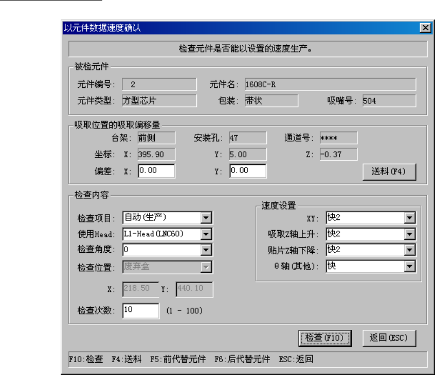 • 从菜单中选择 [检查速度] ,显示[以元件数据速度确认] 画面。