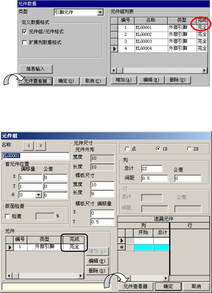在元件数据画面中确认元件组数据已完成后,点击“元件查看器”按钮。