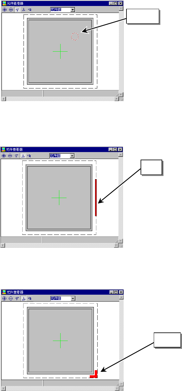 第2部 功能详解篇 第6章 通用图像 6-15 ◇球: 为了在红色圆形(涂色) 中表现出立体感,在右 上部标有白色的点。 ◇平面: 用绿色的圆形或正方形 来表示 。 ◇栏: 用淡蓝色的圆形或正方 形来表示。 6-3-4 按元件种类区分“元件查看器”画面例 1) 外部引脚、内部引脚 图 6-3-4-1 外部引脚元件画面显示例 2) 球、平面、列 球、平面、列采用各不相同的颜色显示。 图 6-3-4-2 球元件画面显示例 ◇外侧引脚: 红色…