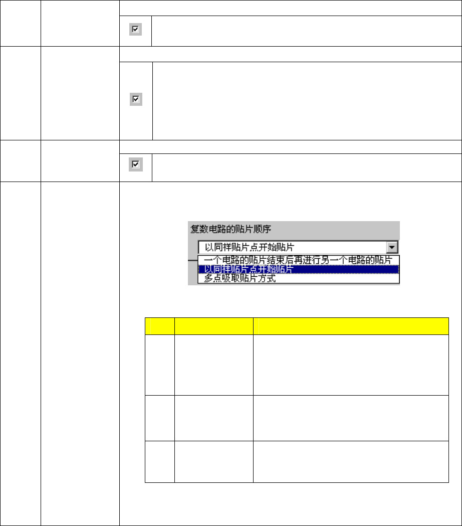 表 7-2-4 多电路的贴片顺序的选项及概要