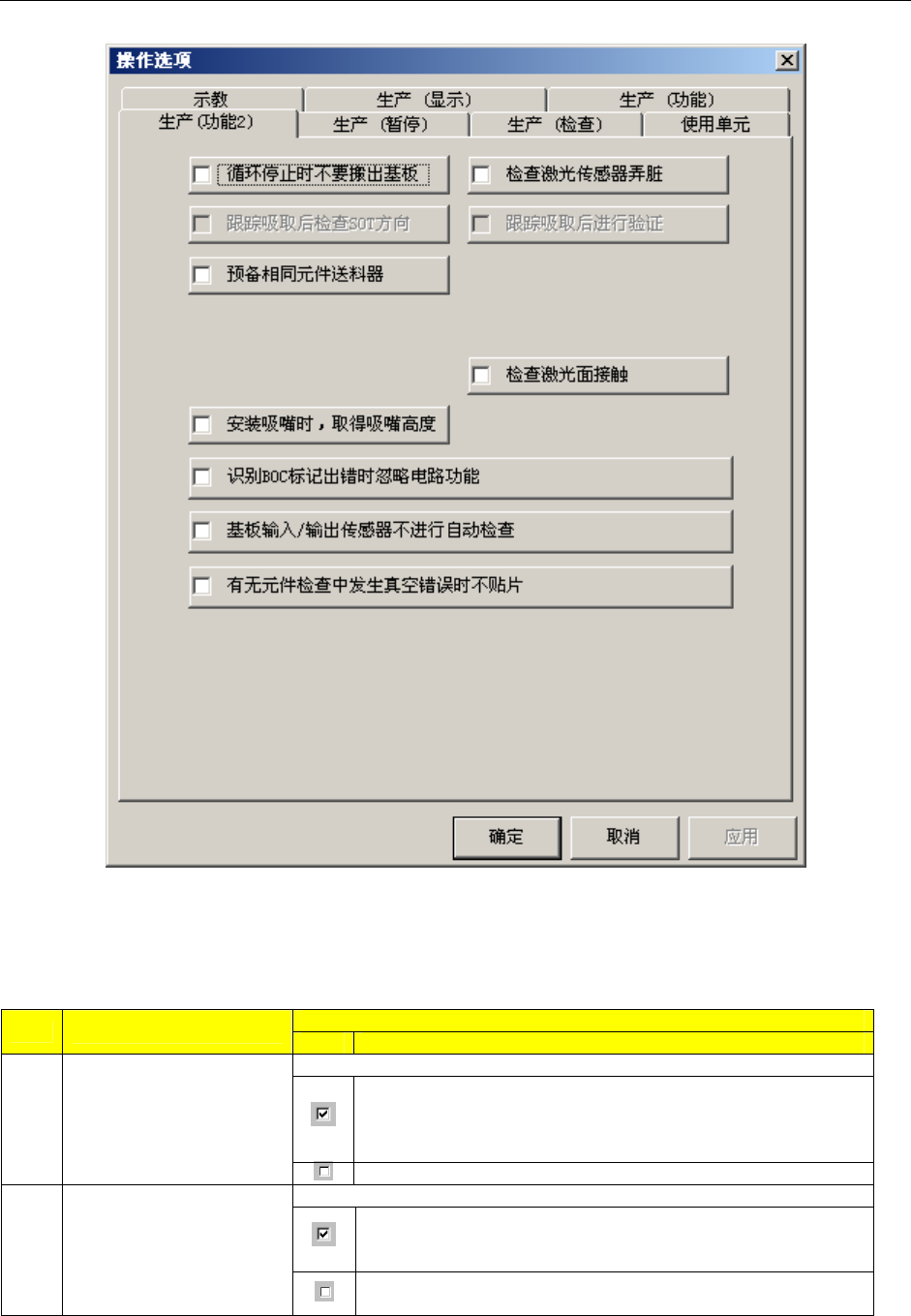 表 7.2.5 生产功能 2 选项设置项目的详细内容