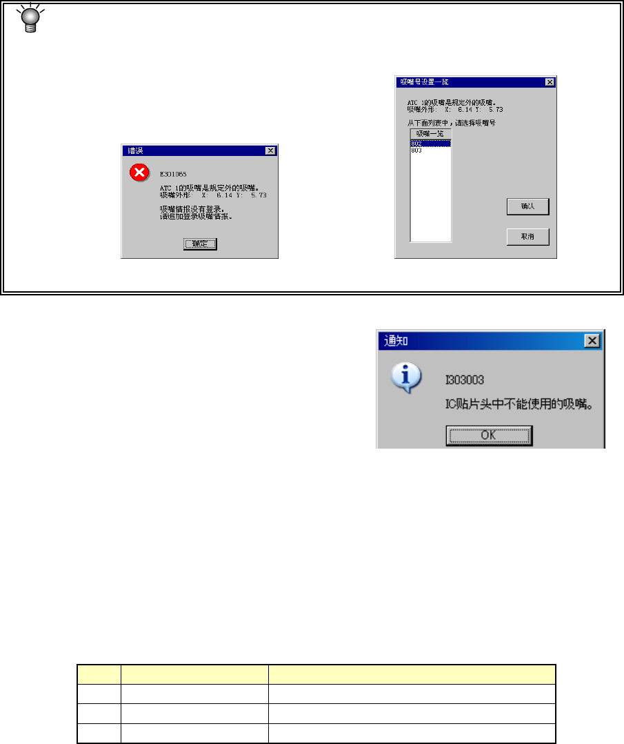 若是 IC 贴片头不能使用的吸嘴时,则会显示