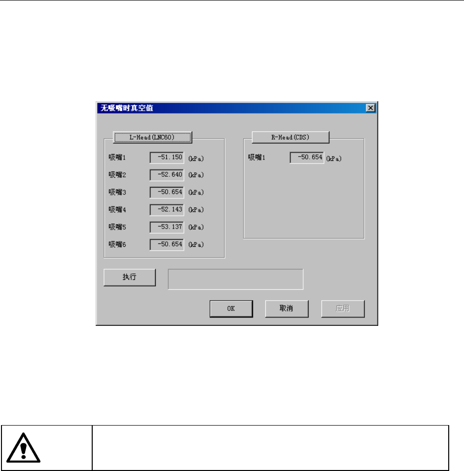 设置未安装吸嘴状态下的各贴片头的真空值。