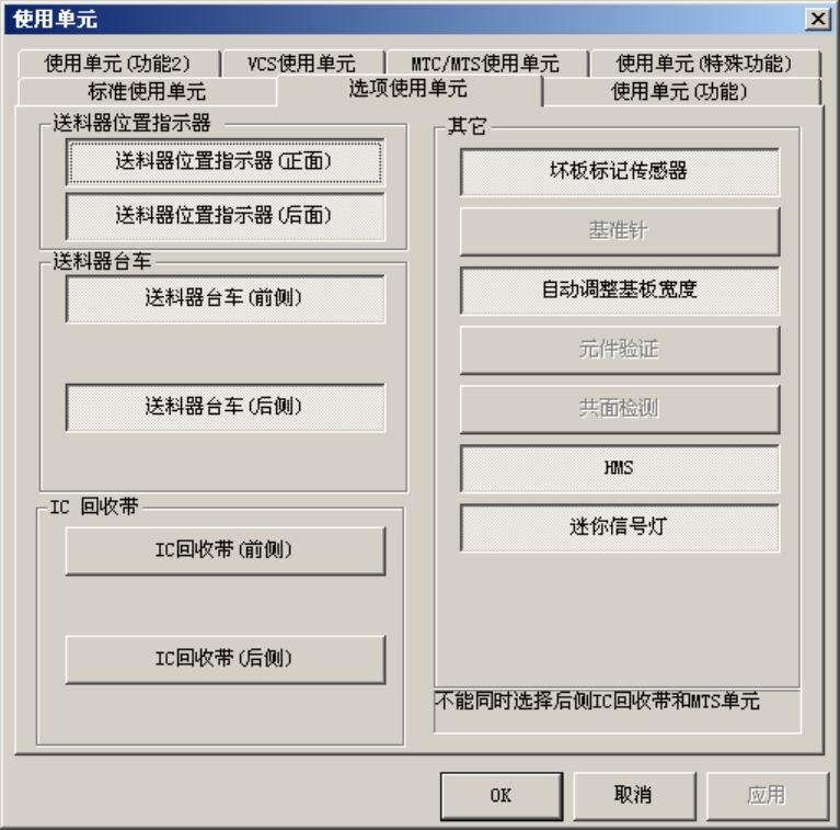 选择“选项使用单元”标签后,会显示下列“选项使用单元设置”画面。