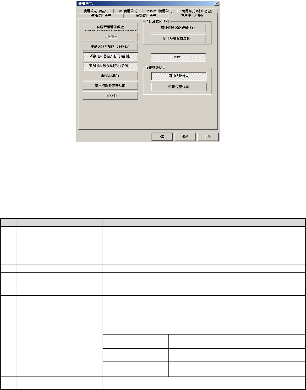 选择“使用单元(功能)”标签后,显示如下“使用单元(功能)设置”画面。