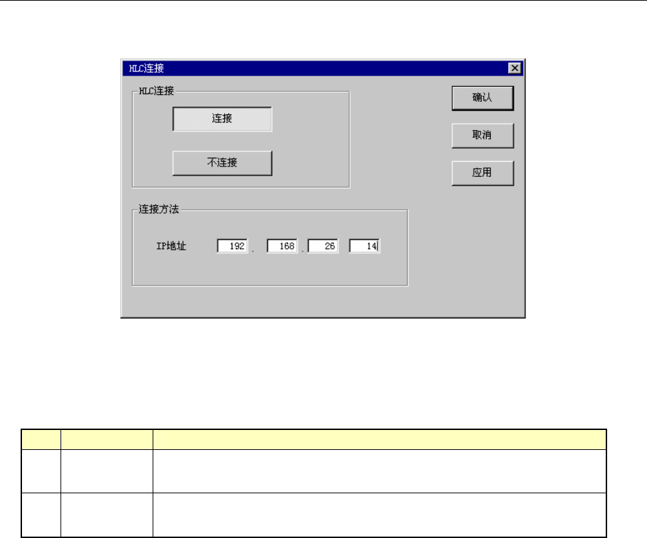 选择HLC连接后,显示如下连接HLC的设置画面。