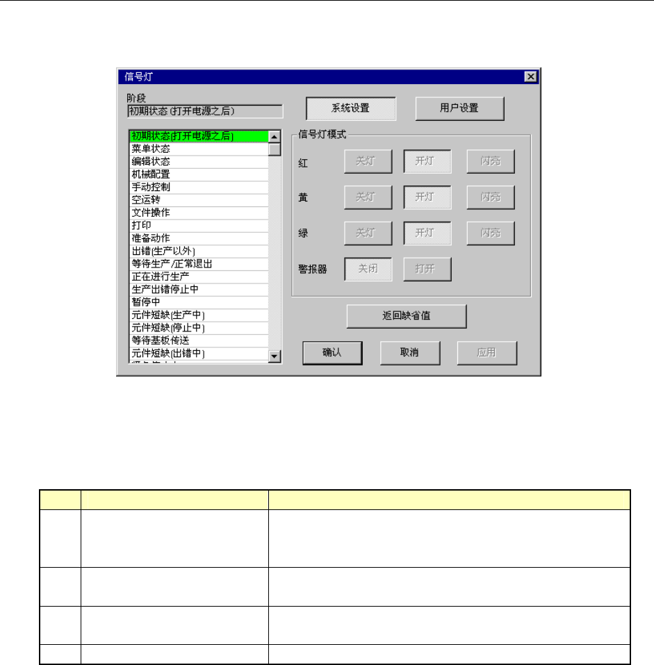 根据画面左侧的一览表,选择要设置的动作,指定信号灯样式(选择后,按钮变为凹状态)。