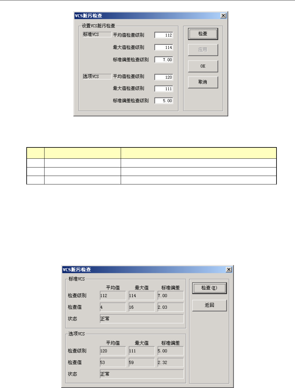 按下[检查]按钮,启动[VCS 脏污检查]对话框,再按下该对话框中的[检查]按钮,进行 VCS