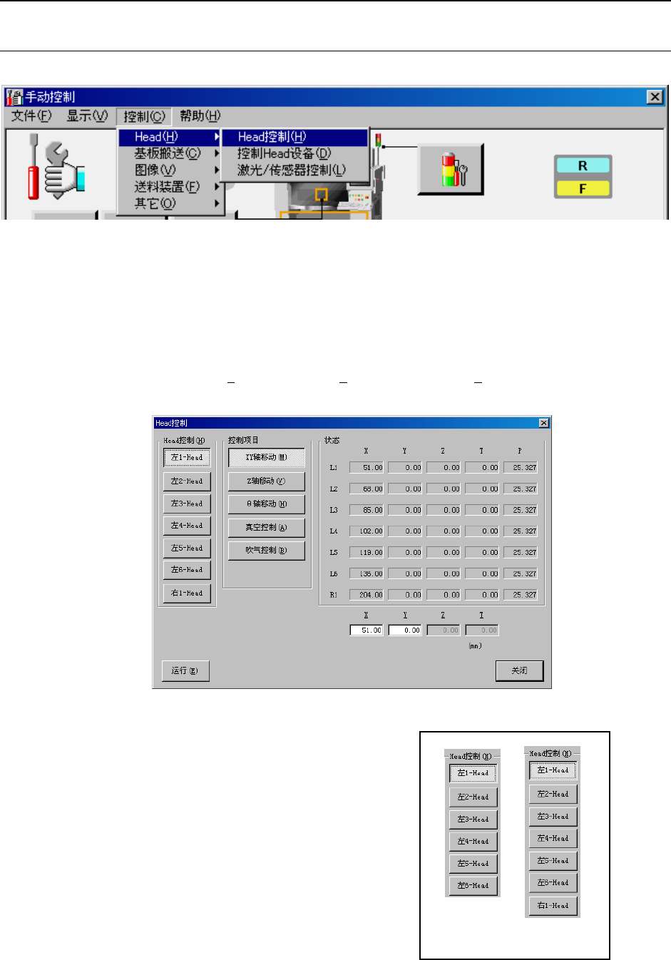 制Head设备”,显示如下的贴片头设备控制画面。