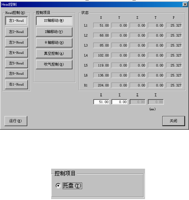 选中控制项目的“放回吸嘴”时,选择“执行(E)”按钮或按 “F3”键来进行控制。