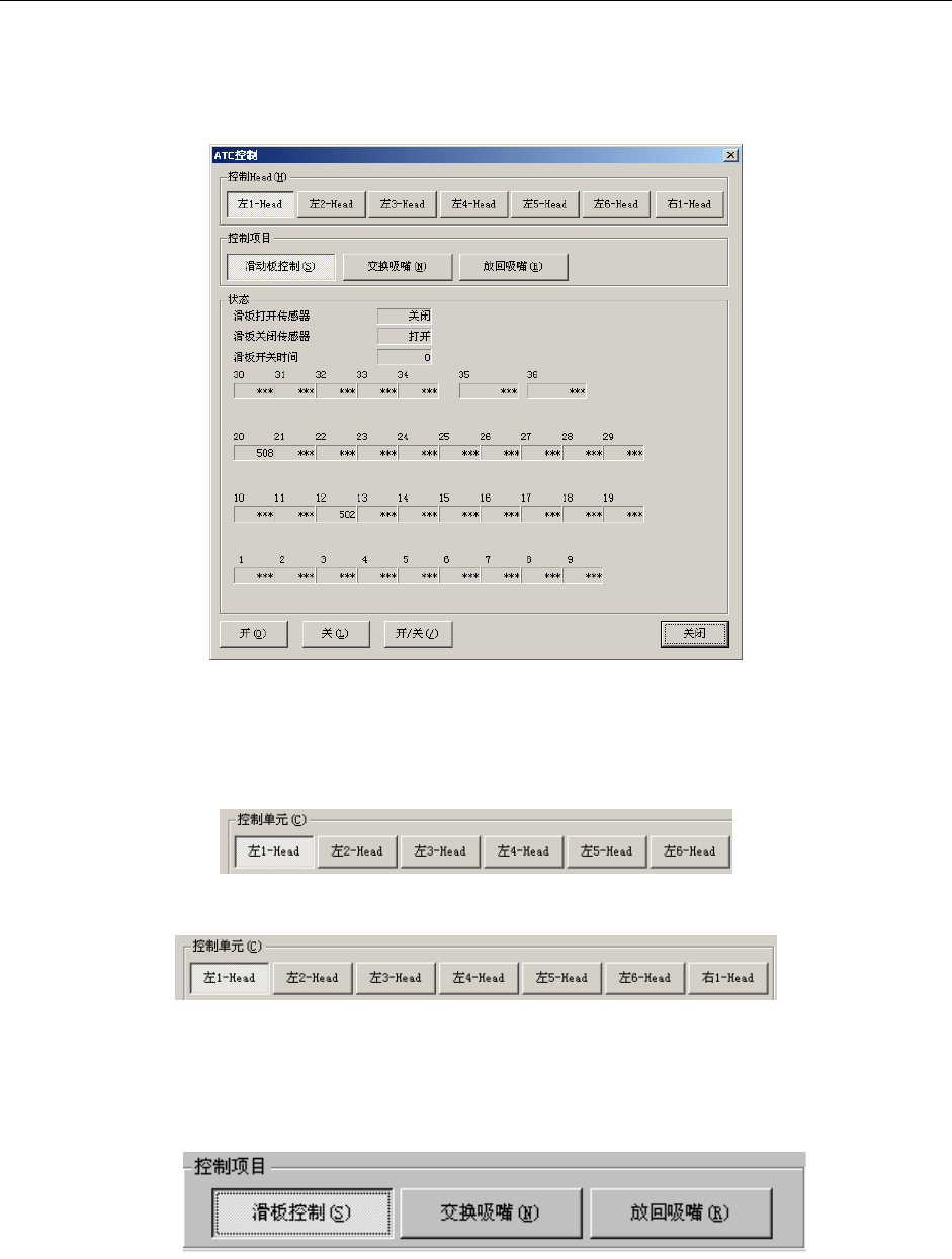 用按钮选择更换吸嘴的 ATC 编号,按下“OK”按钮,更换选中的 ATC 编号的吸嘴。