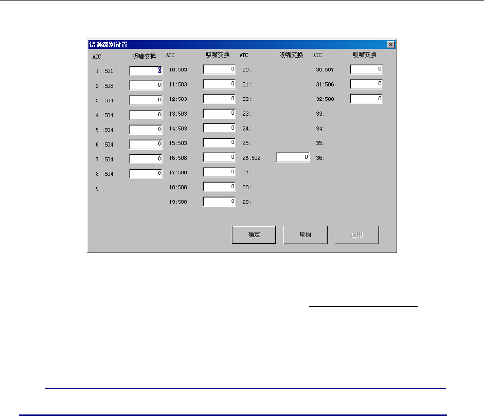 从菜单栏中选择“工具”/“错误级别设置”/“各吸嘴”,则显示图10-3-4-1。