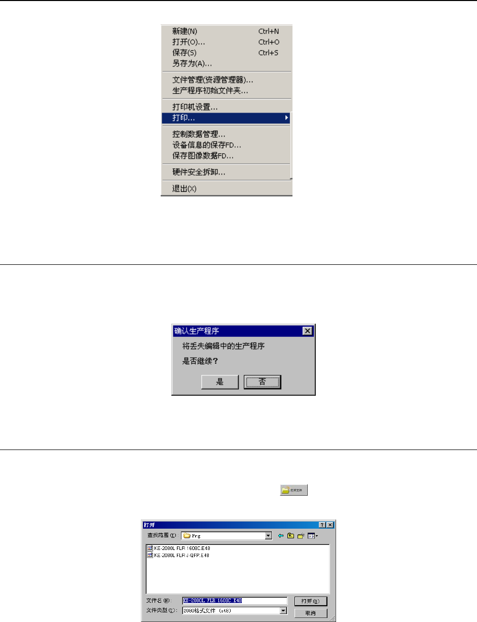 如有未保存的生产程序时显示询问信息。(参见1-5-1新建)