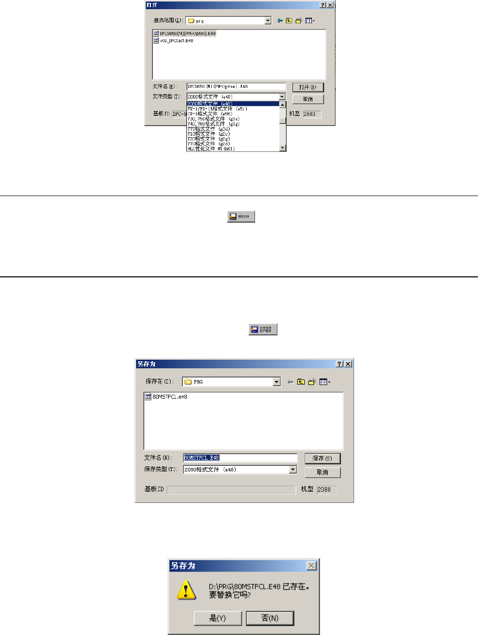 若要用其他机种的文件类型保存生产程序时,请选择“文件类型”后,再点击“保存”。