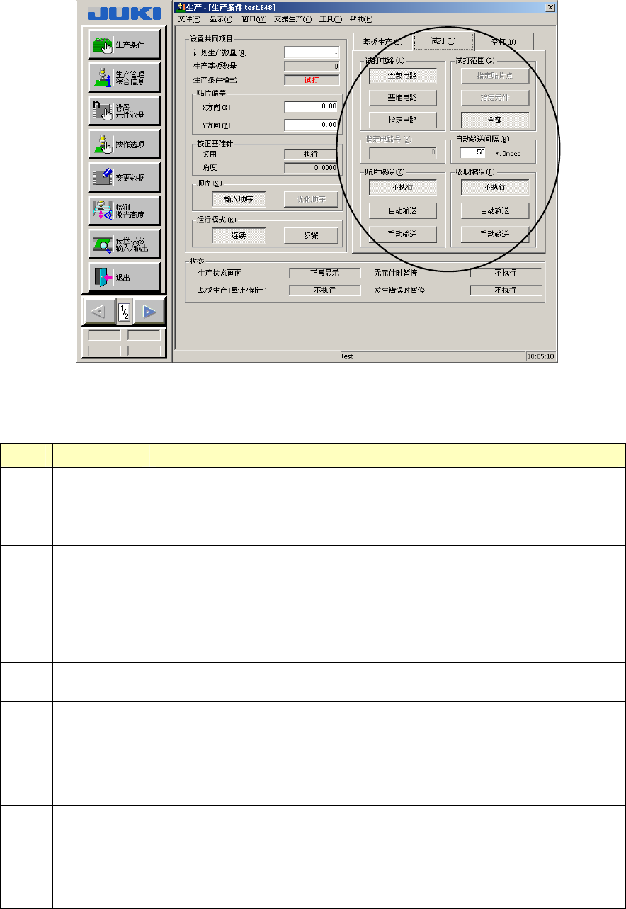 第1部 基本篇 第2章 生产 2-39 NO. 运行模式 内容 1 连续 除非按下暂停<STOP>开关中断生产外, 连续生产基板直至生 产结束为止。 2 单步 移动位置时暂停。 1 移动到元件吸取位置后 2 移动到贴片位置后 3 移动到坏板标记位置后 4 移动到基准位置后 5 移动到产品废弃位置后 6 其他 XY 移动结束后等 要继续生产时,按<START>开关。 在连续生产时,按一次<STOP>开关…