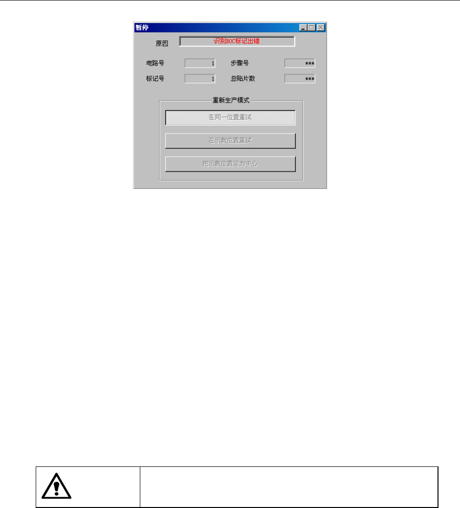 在识别BOC标记、区域基准标记时发生识别错误时,会显示下列画面,并进入暂停状态。