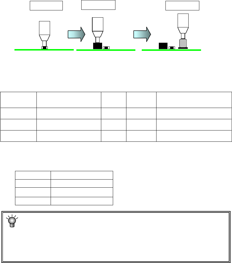 第1部 基本篇 第4章 制作生产程序 4-118 ③ 考虑元件种类、元件高度 制作密集元件贴片(邻接贴片)的程序时,可设置自动考虑元件高度的元件层。 选中本项后,按下列顺序进行贴片。 <考虑了元件种类、元件高度的贴片> <贴片的优先顺序与元件种类、元件高度的关系> 优先顺序如下表所示,非铝电解电容器产品优先进行贴片。 非铝电解电容器产品 铝电解电容器产品 优先顺序 元件高度(mm) 优先顺 序 元件高度(mm) …